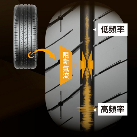 輪胎内部有特製靜音棉,吸收及減少路噪及呔噪 |
