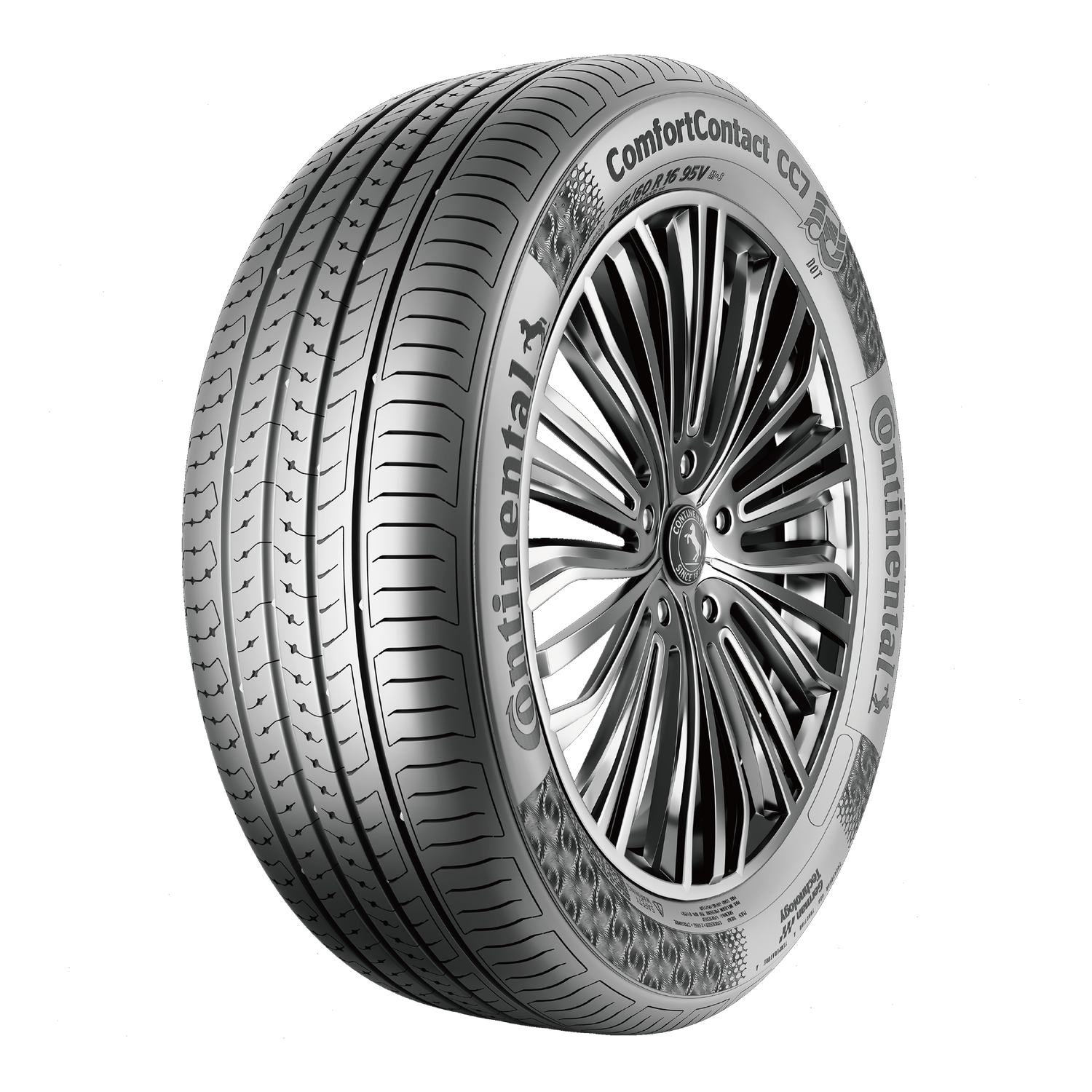 德國馬牌 (Continental) ComfortContact CC7 是一款旅行型輪胎,更注重於舒適、低噪音與高里程。全新升級的噪音抑制系統3.0(Nosie Breaker 3.0)和亥姆霍茲共振器(Helmholtz Resonator),進一步將輪胎舒適降噪提升至全新境界。利用胎溝中之特殊設計,打斷流經胎溝之聲波,再配合消音艙設計,將其整齊排列在胎紋表面上。聲波在輪胎經過時被吸入這些消音艙,大幅吸收惱人噪音頻率,此設計大大降低了噪音傳進車內的機會,從而實現更安靜的駕駛體驗。