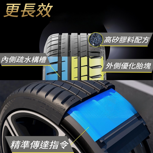 高強度胎面覆蓋,源自賽道科技,精準傳達方向盤指令,卓越指向力
