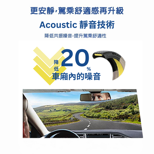 輪胎内部有特製靜音棉,吸收及減少路噪及呔噪 |