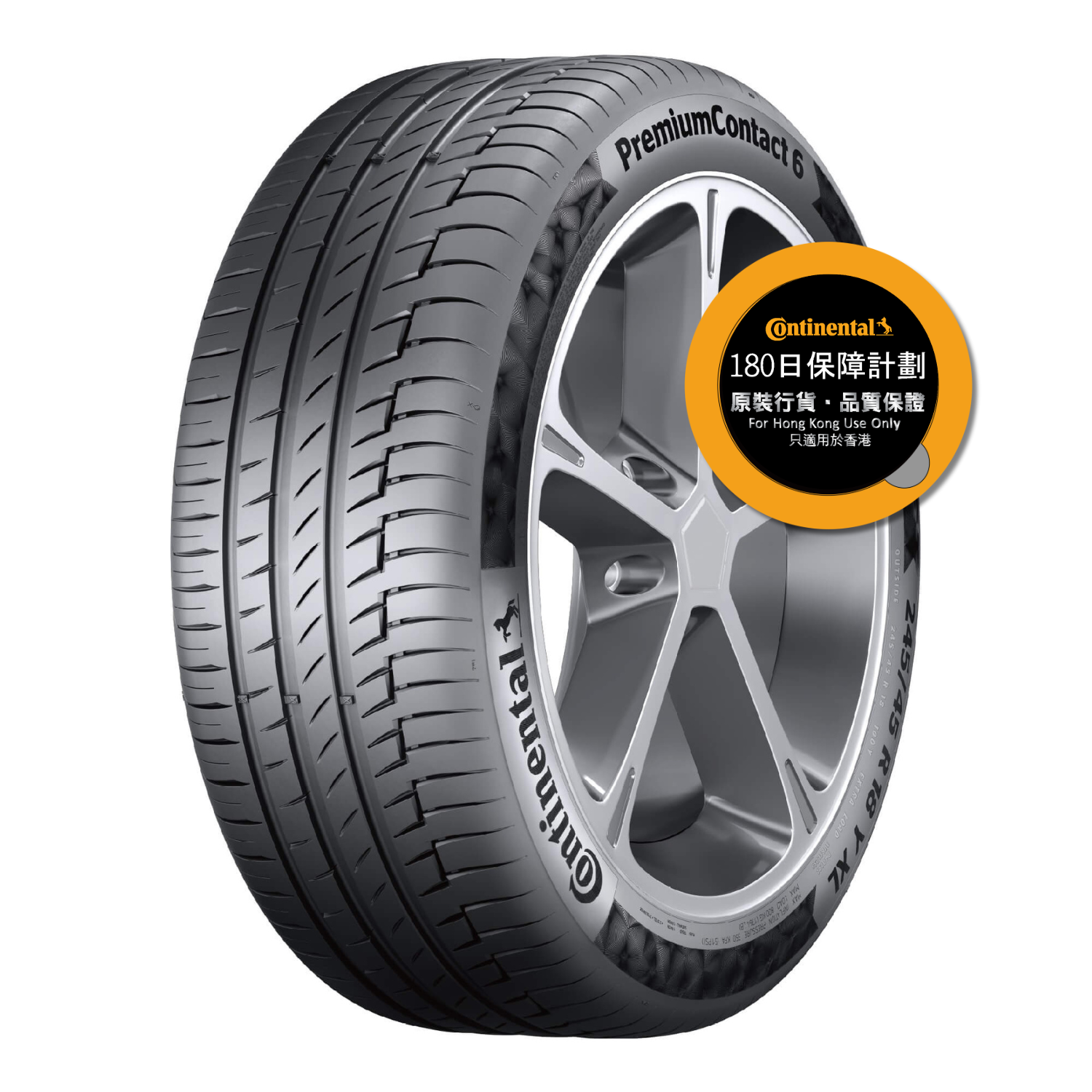 德國馬牌 (Continental) PremiumContact™ 6 (PC6) 是一款旅行型輪胎,專為各種房車與部分休旅車SUV設計。輪胎優化的胎塊結構,達致極致的操控力以及過彎的穩定性。透過採用安全矽膠配方(Safety Silica Compounds)大幅提升使用里程數達 15%,並維持優異的濕地煞車表現,在歐盟溼地煞車獲得最高「A」級評等。