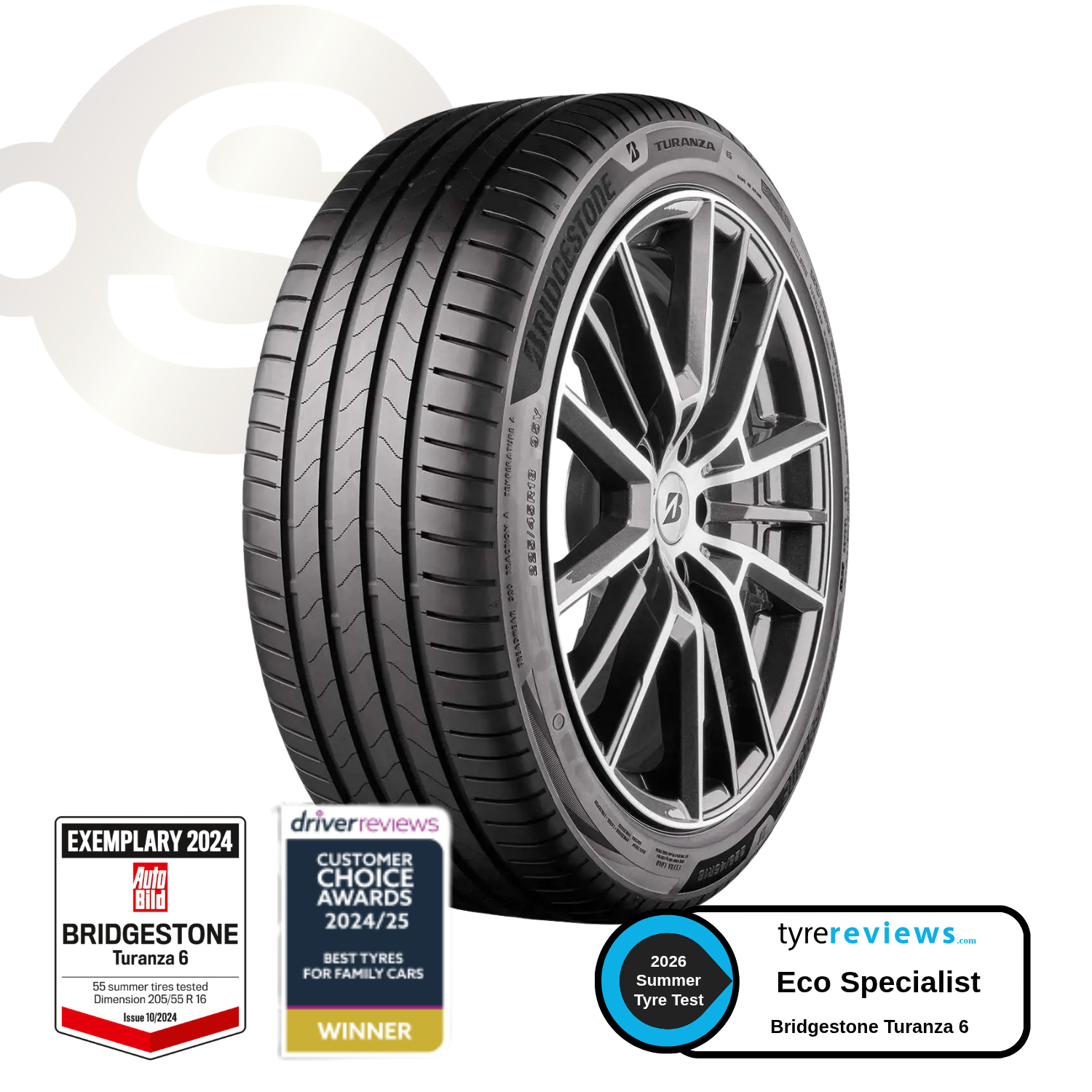 石橋 (Bridgestone) Turanza 6 是一款旅行型輪胎,作為 Turanza T005 的後繼新胎款,具有優異的濕地性能表現,同時也就降低滾動阻力進行強化,讓無論燃油車款或是電動車款都適配。Turanza 6 擁有比 T005 更長 22%的使用壽命。透過胎唇的空氣力學設計,也讓滾動阻力部分則最高降低 4%。並且於部分規格獲得歐盟輪胎標籤滾動阻力 A 級的認證。Turanza 6 也透過配方調整、胎體設計跟新的花紋技術來強化倫胎的性能。導入的技術包含 Enlighten 科技,在滾動阻力進一步降低,噪音表現上更比 T005 降低達 2db。